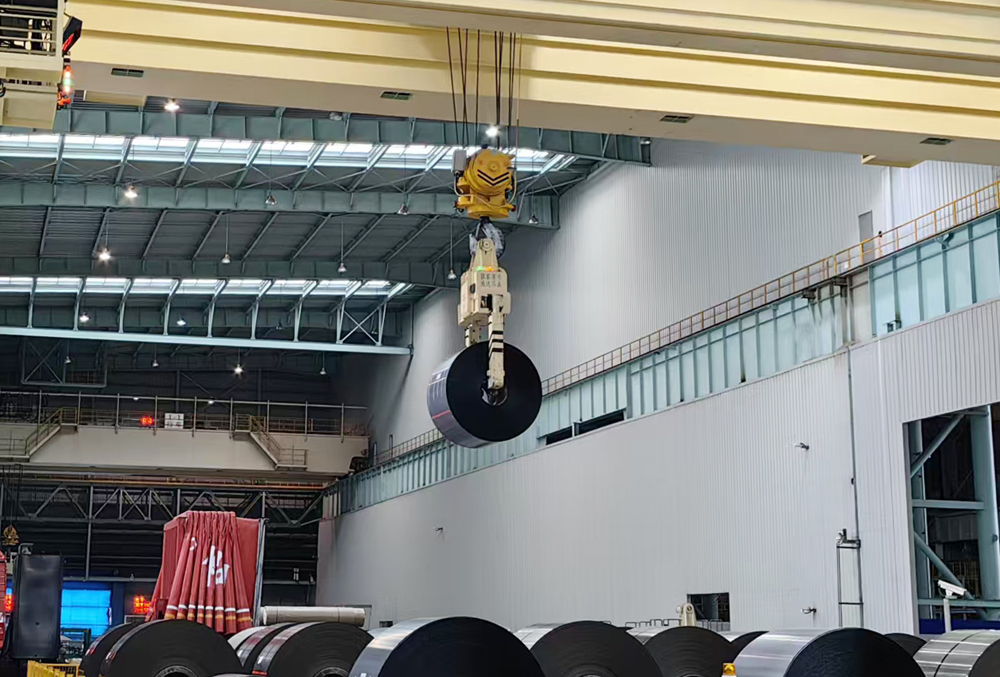 图为正在吊运钢卷的无人化行车。人民网记者 唐小丽摄