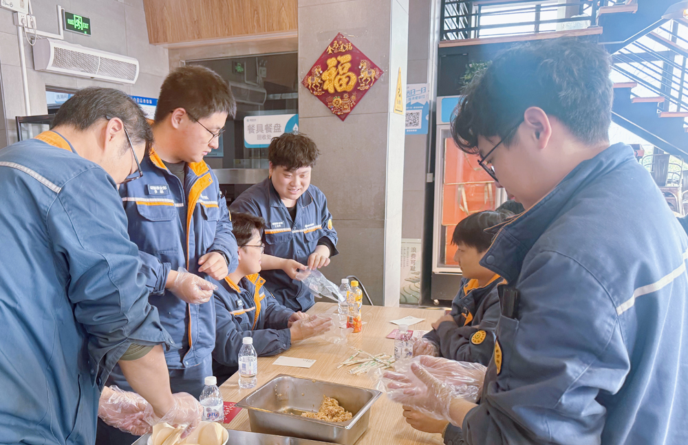 员工一起包饺子迎新年。苏王鹏摄