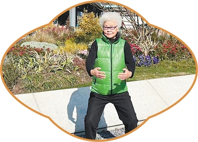 上海静安区,居民史季枫在“口袋公园”打八段锦。 |