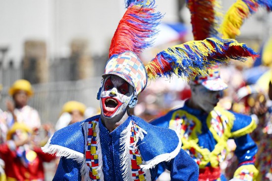 1月5日,在南非开普敦,表演者参加开普敦吟游诗人嘉年华游行活动。开普敦吟游诗人嘉年华的历史要追溯到南非19世纪的奴隶制时代。当时的奴隶一年仅可在1月初放假一天。在这一天,他们会打扮成吟游诗人的模样,到街上举行歌舞游行,一方面庆祝新年,一方面通过这种方式向殖民统治者表示抗议。新华社发(哈比索·姆卡贝拉摄)