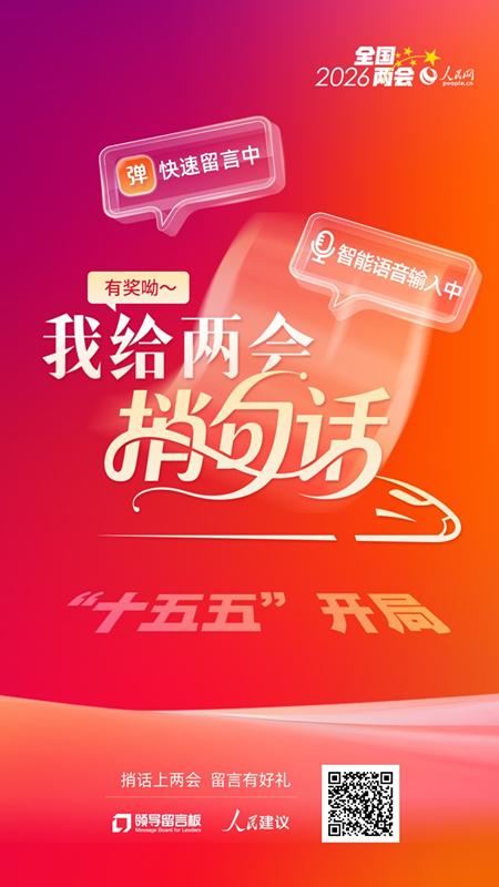 人民网2026年“我给两会捎句话”建言征集活动正在进行,各界群众可通过活动专题、人民网“领导留言板”小程序、“人民网+”客户端等渠道参与建言。