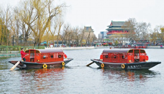 什刹海游船昨天开航,春日泛舟尽赏京城水韵。 本报记者 方非摄