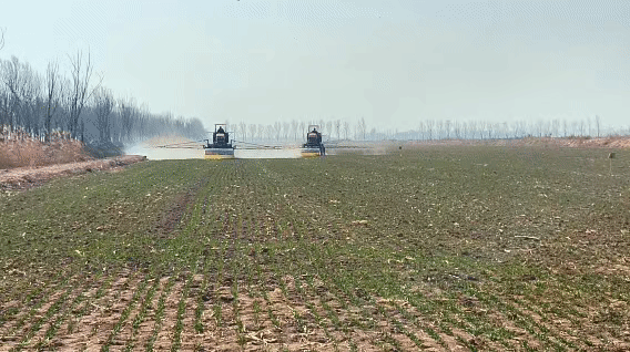 病虫草害防控同步推进,无人机在田间精准飞防。对晚播弱苗来说,减少病虫草害的干扰,就是为后期分蘖成穗保驾护航。