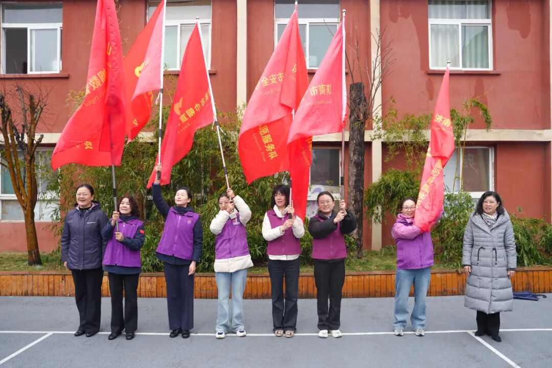 为巾帼数智助老、巾帼护绿、巾帼宣讲、安全守护、文化传承、泉城蓝焰等6支巾帼志愿服务队伍授旗。