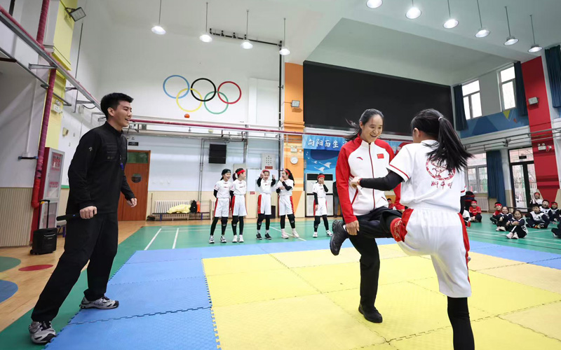 在白家庄小学汇景苑校区,开学典礼以“健康第一 冠军同行”为主题,邀请国家帆船帆板队奥运冠军卢云秀走进校园,与学生面对面互动。