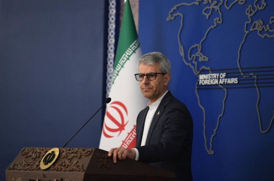 2026年2月23日,在伊朗首都德黑兰,伊朗外交部发言人巴加埃出席每周例行记者会。新华社记者沙达提摄