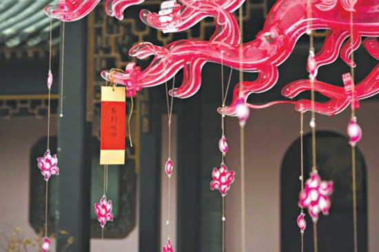 在中国工艺美术馆中国非物质文化遗产馆,来自各地的非遗花灯造型各异、流光溢彩。元宵节当天,该馆推出两项特色互动活动,邀请观众“智”闹元宵。馆内一层,一副妙趣横生的上联“响当当一马当先当仁不让”搭配横批“春风着意”,静候知音。观众可将书写的下联投入中央大厅北侧咨询台的“妙联箱”中,元宵节当天,馆方将精选30条优质下联,入选者可获得限定年节非遗好礼。