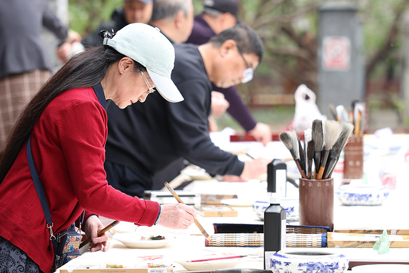 在“寻香法源寺 执笔绘春光”第二十届丁香笔会上,郑山麓、陈溪峋等书画艺术家现场挥毫泼墨,创作了一批以“丁香”“和合”为主题的作品。观音殿前展出了历届笔会名家佳作,丁香盛景与翰墨丹青交相辉映。郁金香民族管弦乐团带来“丝竹雅韵·丁香流芳”民乐专场演出,《酒狂》《阳关三叠》《渔舟唱晚》等经典曲目让观众领略了传统民乐的魅力。
